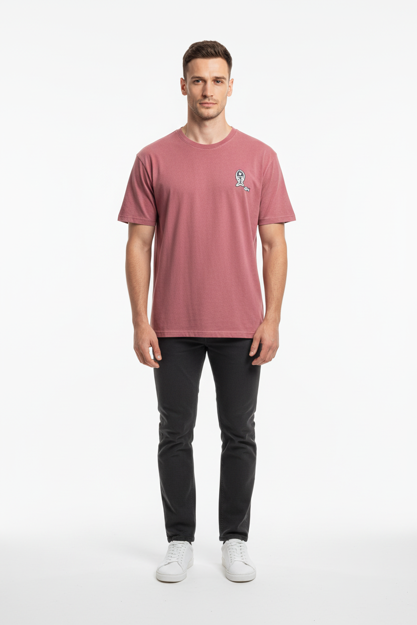 La Camiseta Fishbone Minimal apuesta por un look limpio y actual: color rosa lavado y un detalle pequeño en el pecho con el icono de espina de pez, discreto pero con personalidad.