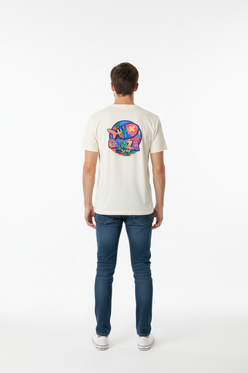 Camiseta GONZA Crema — Logo Pop (Pecho + Espalda)