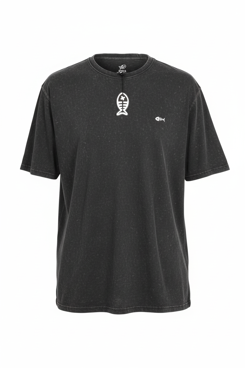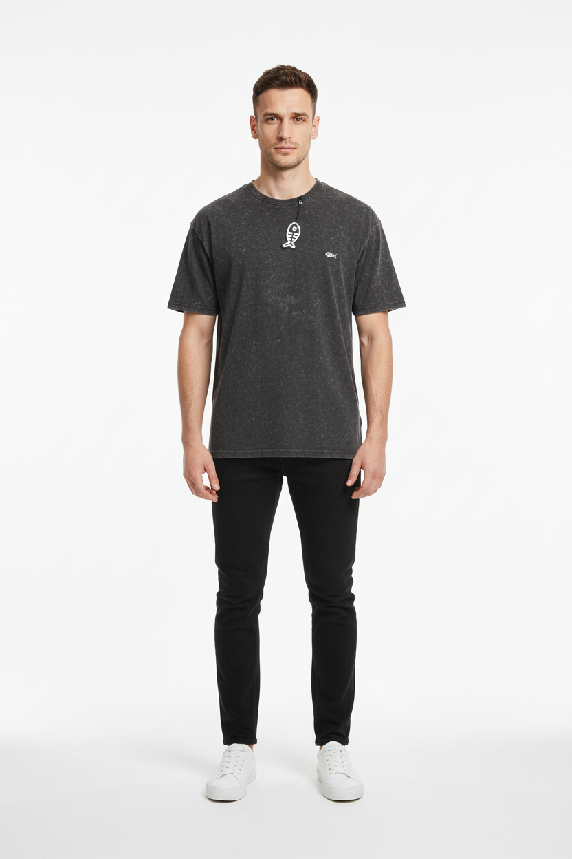 Camiseta Oversize Fishbone – Gris Antracita Lavado