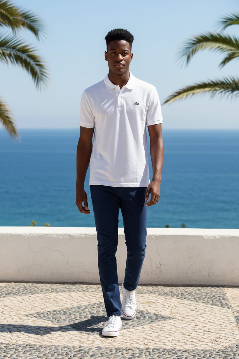 • Tejido:  confeccionado en algodón piqué (100% algodón), lo que proporciona una textura transpirable, fresca y duradera.