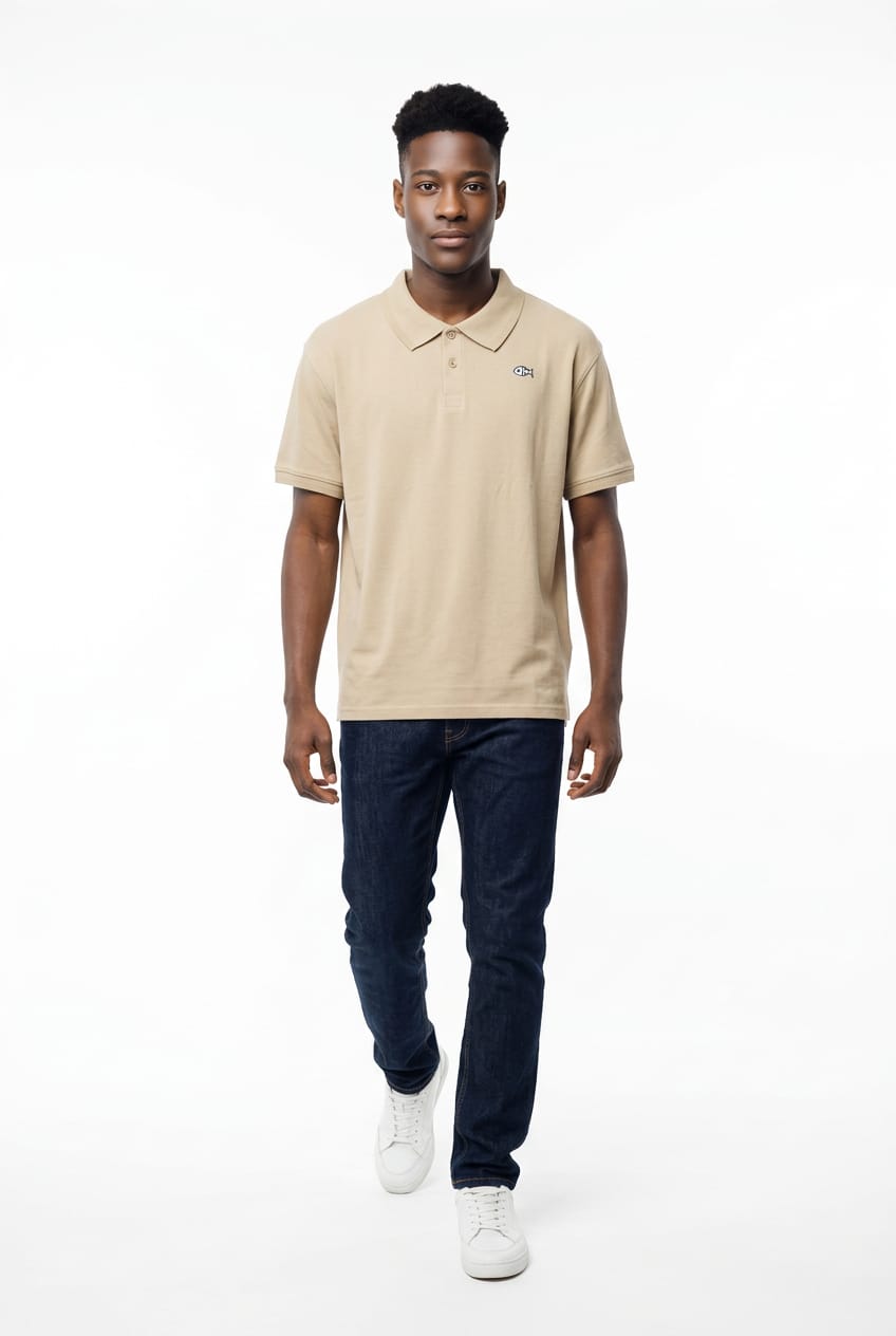 Este polo de manga corta de la marca Gonza destaca por su elegancia relajada. Está confeccionado en un tejido de algodón piqué de tacto suave que ofrece una excelente transpirabilidad y durabilidad. Color: Arena / Beige (Tan), un color neutro muy fácil de combinar. Corte: Modern Fit, diseñado para ofrecer una silueta limpia sin sacrificar la comodidad. Detalles: Cuello y puños acanalados, cierre frontal de botones y el icónico bordado del esqueleto de pez en contraste sobre el pecho.